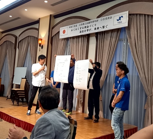 小浜YEG 6月例会 2025年06月10日 カテゴリ01 今年、設立40周年を迎える「小浜商工会議所青年部」 6月例会 OBと現役の交流会 に出席しました。 例会の第1部 20周年、30周年の節目の年に会長、実行委員長を務めた4OBの対談。 例会第2部 今年度、もし、開催するとしたらどんなワクワクする例会を企画しますか? というテーマでグループワーク。 グループ発表へと続き、どのプランが良かったか1票を投じる。