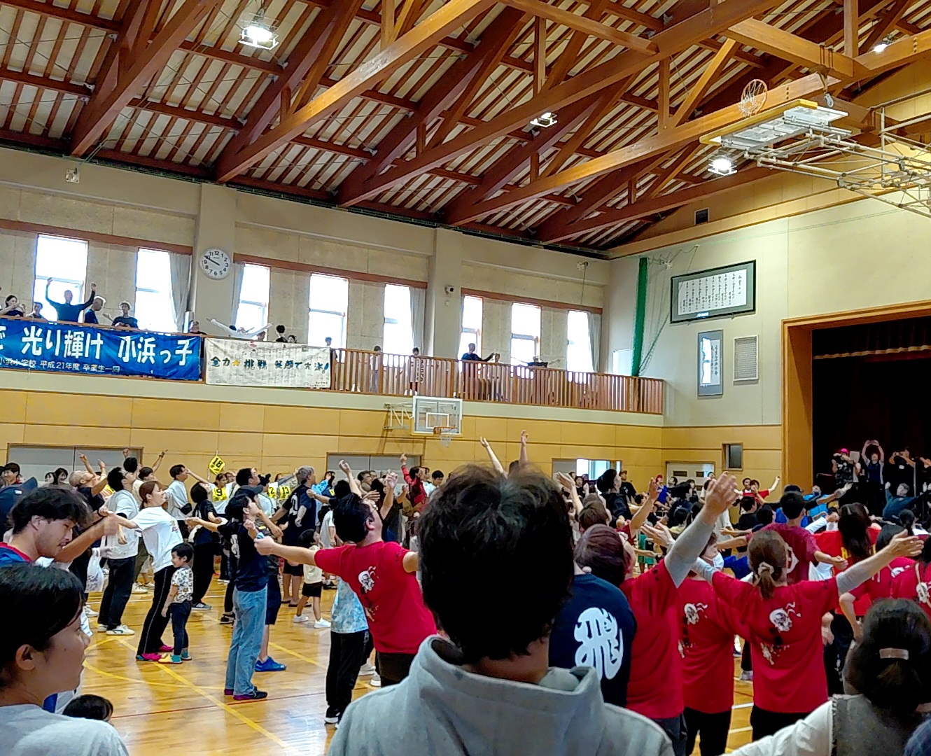 朝からの雨☂で小浜小学校体育館にての開催となりました。