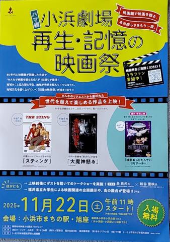 浜劇 再生・記憶の映画祭 2025年11月20日 カテゴリ01 昔、私の高校時代の頃、なんと、はまかぜ商店街には 映画館が2つもあったんですヨ ( ゚Д゚)( ゚Д゚) 小浜劇場(通称 浜劇)と中央劇場がそれなんです。 今回、県の地域起こし隊の大谷さんが中心となり 22日には旭座にて親子で楽しめる映画祭を開催してくださいます。 古いアルバムを引っ張り出したり当時の関係者の皆様などにお繋ぎさせていただきました。