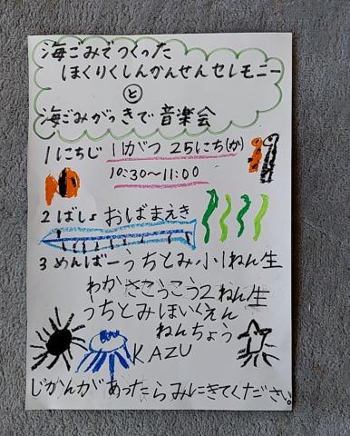 海ゴミ 再利用 2025年11月22日 カテゴリ01 市内 内外海小学校の生徒さん達がセレモニーを開催します。 是非、発表会を聴きにきてくださいネ!! 25日(火) 10:30〜11:00 JR小浜駅にて 海岸線に打ち上げられた「海ゴミ」を使って 北陸新幹線早期実現のセレモニーや音楽会を開催してくれるそうです!! 市民へのPRの為、弊社のウィンドーにも掲示させていただきました。