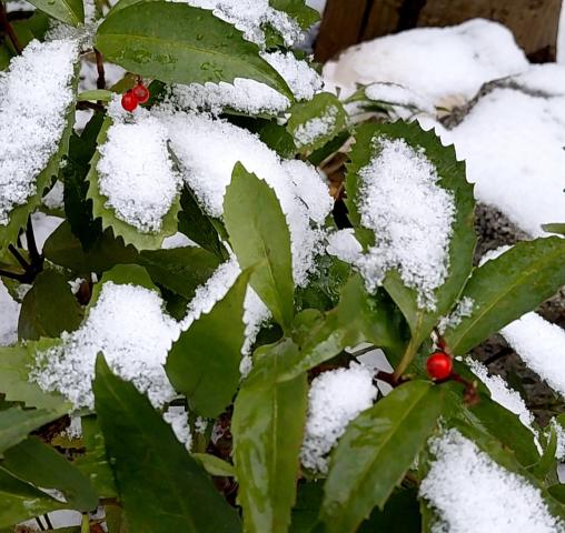 やっぱり来ましたねぇ 2026年01月21日 カテゴリ01 今朝、庭の南天には少しの雪でしたが・・・ 断続的に雪が降り始めました。 お昼頃はボタン雪 ❄❄❄ 今夜から本格的に降るそうです。 ちょっと心配・・・